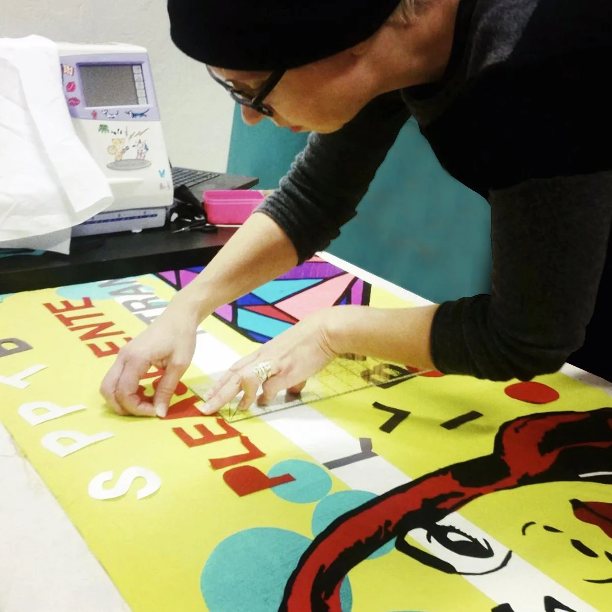 In 2016, I was invited to become the first Artist in Residence for the San Jose Museum of Quilts & Textiles (SJMQT). During my residency, I crowdsourced images through an open call requesting portraits and photography of local signage and locations. Additionally, I took photos within a three-block radius of the museum, combining selected images to design quilts. I created and exhibited the quilts at the museum. The quilt “Shine On” from this series is in the museum’s permanent collection, and was recently shown in New Directions, an exhibition celebrating SJMQT’s 45th anniversary.